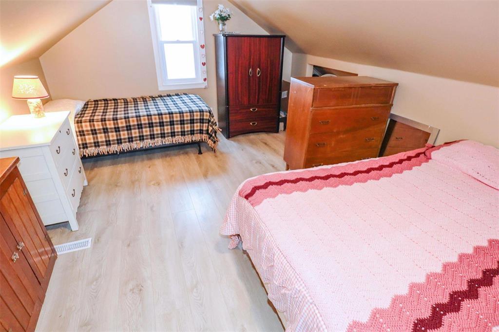 4B//Winnipeg/Well-maintained and adorable 777 sq ft turnkey 1 -storey 3 bedroom home situated on a quiet block with a deep lot featuring newer trees, shrubs, and a garden area, plus an oversized single garage. The main floor offers a spacious living room open to the kitchen perfect for entertaining. A huge upper loft provides flexible space, complemented by an upgraded 4-piece bathroom with tiled flooring. Numerous updates include house shingles (2017), garage shingles (2023), high-efficiency furnace, updated plumbing, insulation, sump pump (2022), flooring, a newer overhead garage door, and fresh paint. Low-maintenance exterior with aluminum soffits and fascia, central A/C, and appliances included. Won t last! (id:4069)