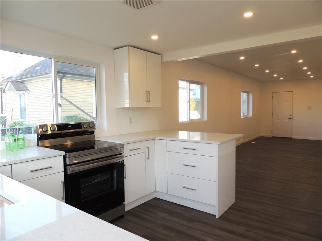 3A//Winnipeg/50'x100' lot has been sub-divided for future builds. Rent or live in 1200 sq ft, 1 1/2 storey with full high basement on fenced 50'X100' lot with garage. Maintenance free vinyl exterior, mostly remodeled, modern interior. Open concept, main floor kitchen with high gloss 2 tone cabiniets and lots of quartz counter tops. Breakfast bar, stainless steel appliances. Pot lights, tons of newer windows, top floor primary bedroom or den. Bright bathroom with ceramic tub surround. Newer HWT, hi-efficiency furnace, electrical, central air. Great package. Nothing to do! (id:4069)