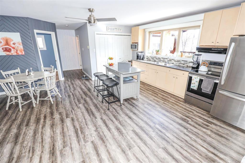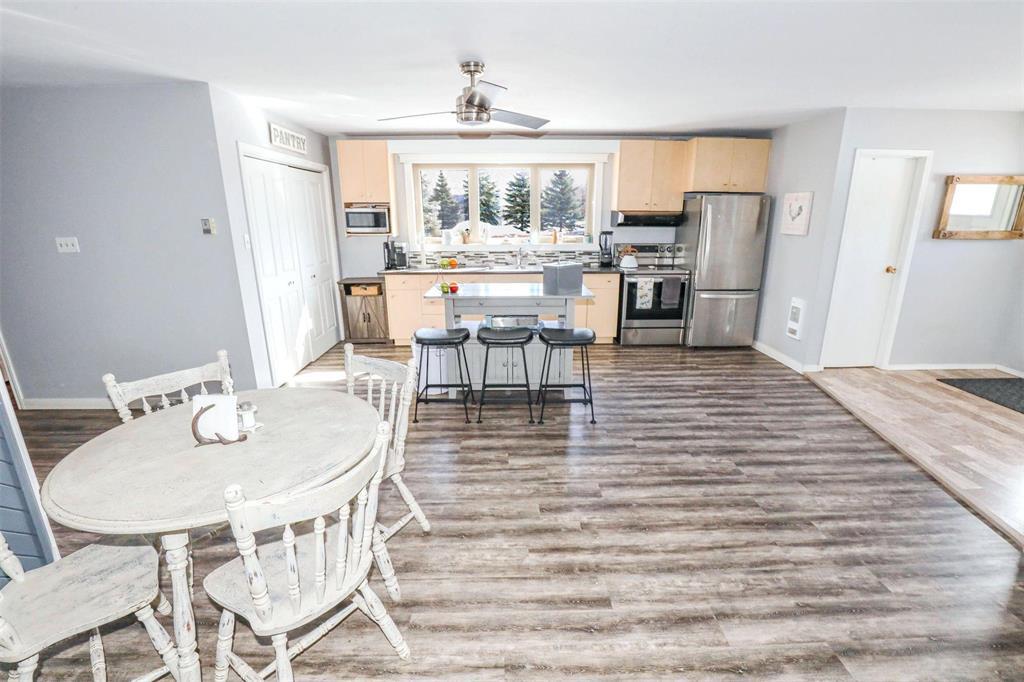 R03//Tyndall/OPEN HOUSE SAT APR 11 ( 12:00-2:00) Absolute gem! Seldom available 1675 sq ft 2 bedroom, 2 full bath bungalow remodeled in today's colors. This open concept 1 level home is filled with natural light. Large tri pane windows throughout, wide halls, huge primary bedroom with modern en-suite bath. Country size massive eat-in kitchen, laminate floors, heated floors to living room and kitchen, wood burning fireplace, c/air, 6 appliances. Generous main floor laundry room could be converted to 3rd bedroom. Solid, bright, and buttoned up, this second owner home is impeccable. The circular drive adds some fun and elegance as you pull into the 3.21 acre treed yard site. Adorable curb appeal, maintenance free exterior to the oversize wired double garage with sheds, deck, gazebo, 2 holding tanks. Upgrades include: metal roofs, soffits, facia, eaves, exterior vinyl to garage. Some tri pane windows and doors (2023), paint, flooring, air (2017), baths, some appliances. Trails galore for the quad and SXS lovers. Close to Lockport and Selkirk for fishing and hunting. Just 2 miles north of Tyndall. Turn key package. Fantastic opportunity at a starter price point. Won't last! (id:4069)